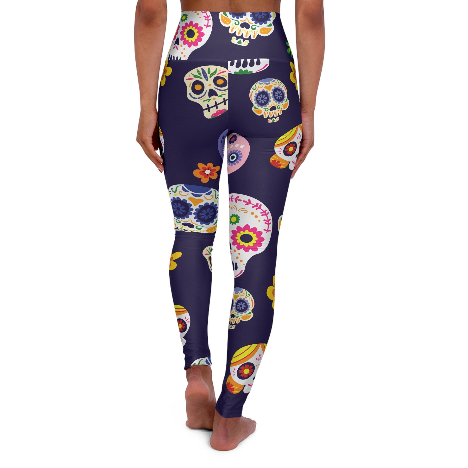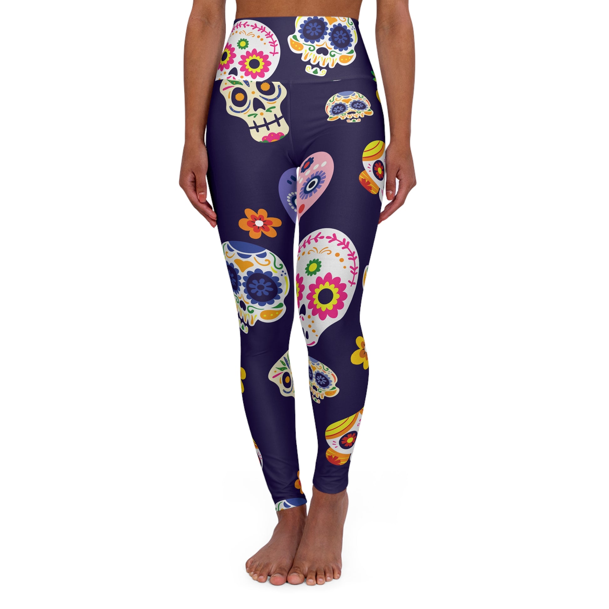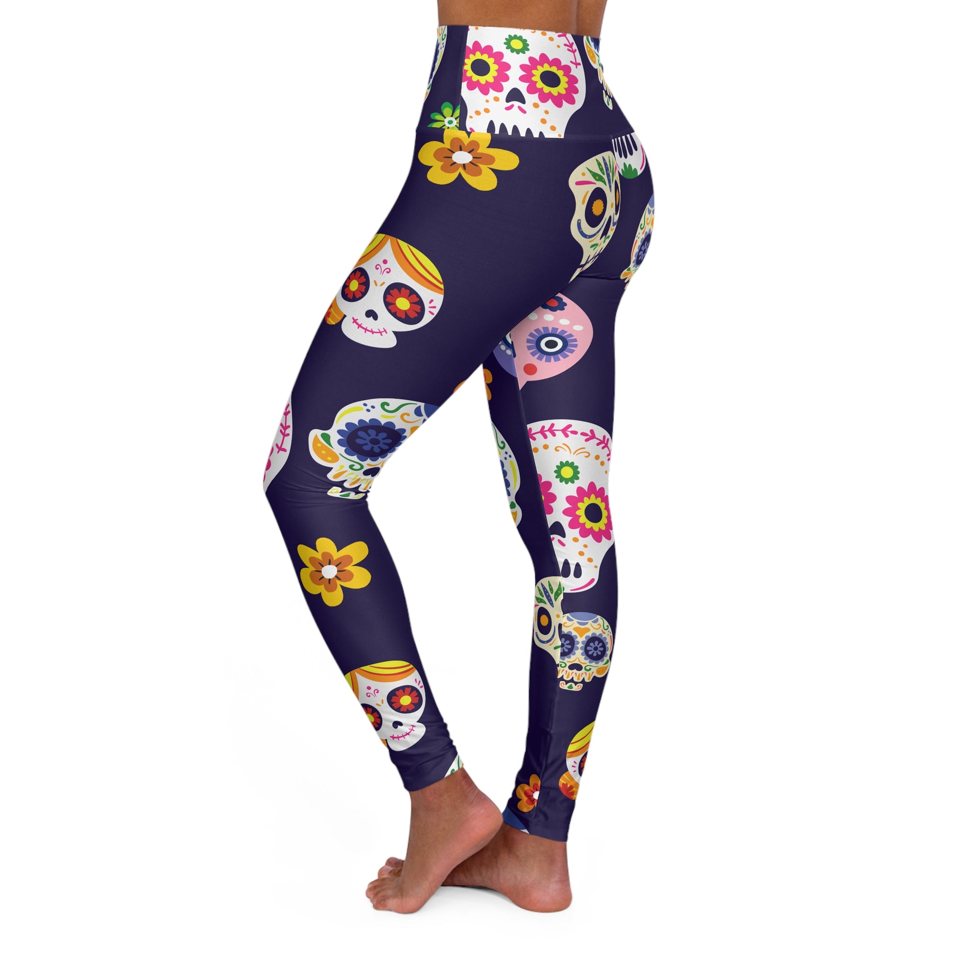 Colorful Day of the Dead High Waisted Yoga Leggings - Skull Pattern Activewear